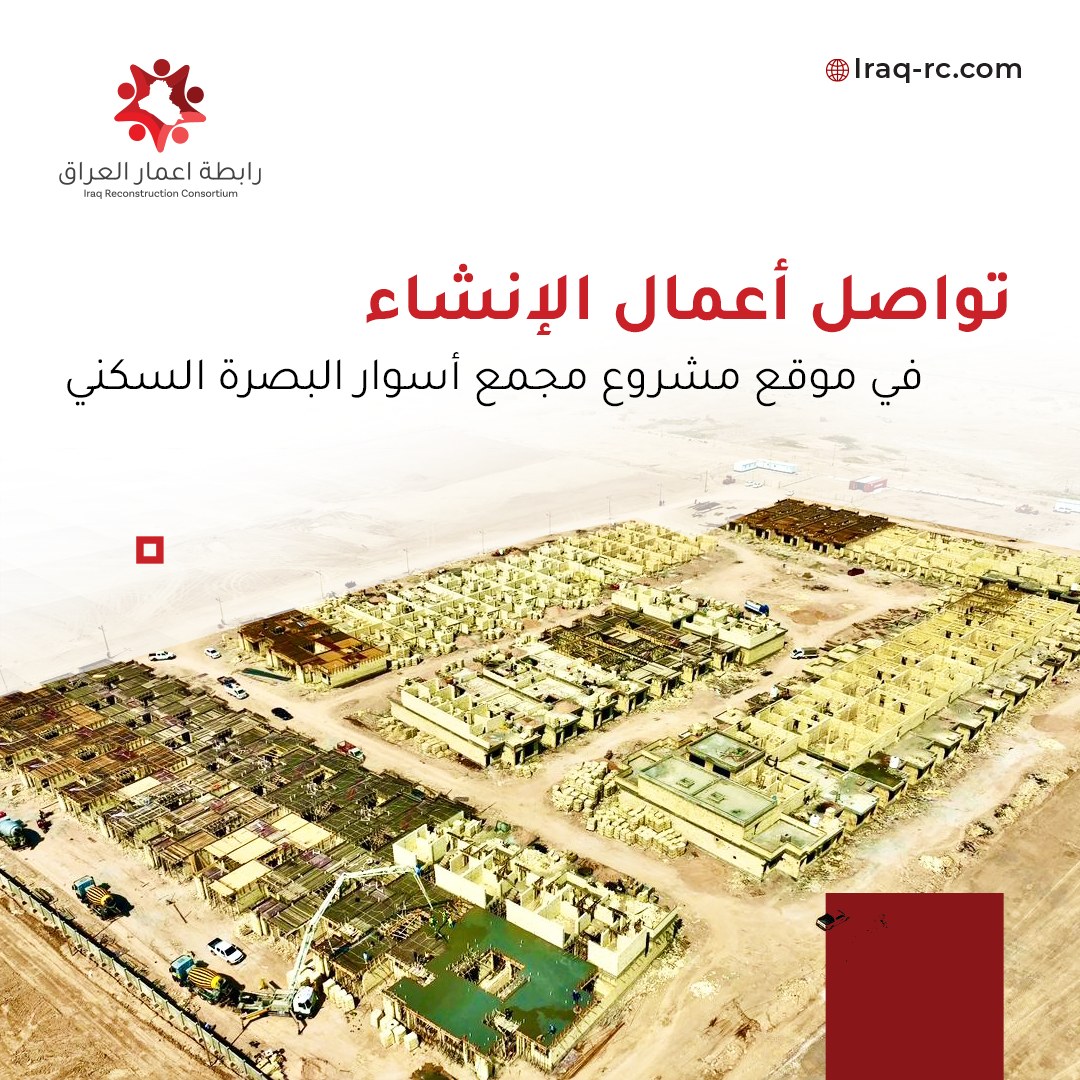 تتواصل أعمال الإنشاء في موقع مشروع مجمع أسوار البصرة السكني، حيث تم خلال الأسابيع الأخيرة الانتهاء من أعمال بناء الطابق الأرضي وكذا أعمال نجارة الأسقف الخاصة به، هذا إلى جانب إنهاء عملية معالجة النسبة الأكبر من الأسقف عقب انتهاء الصب.